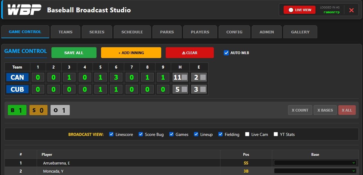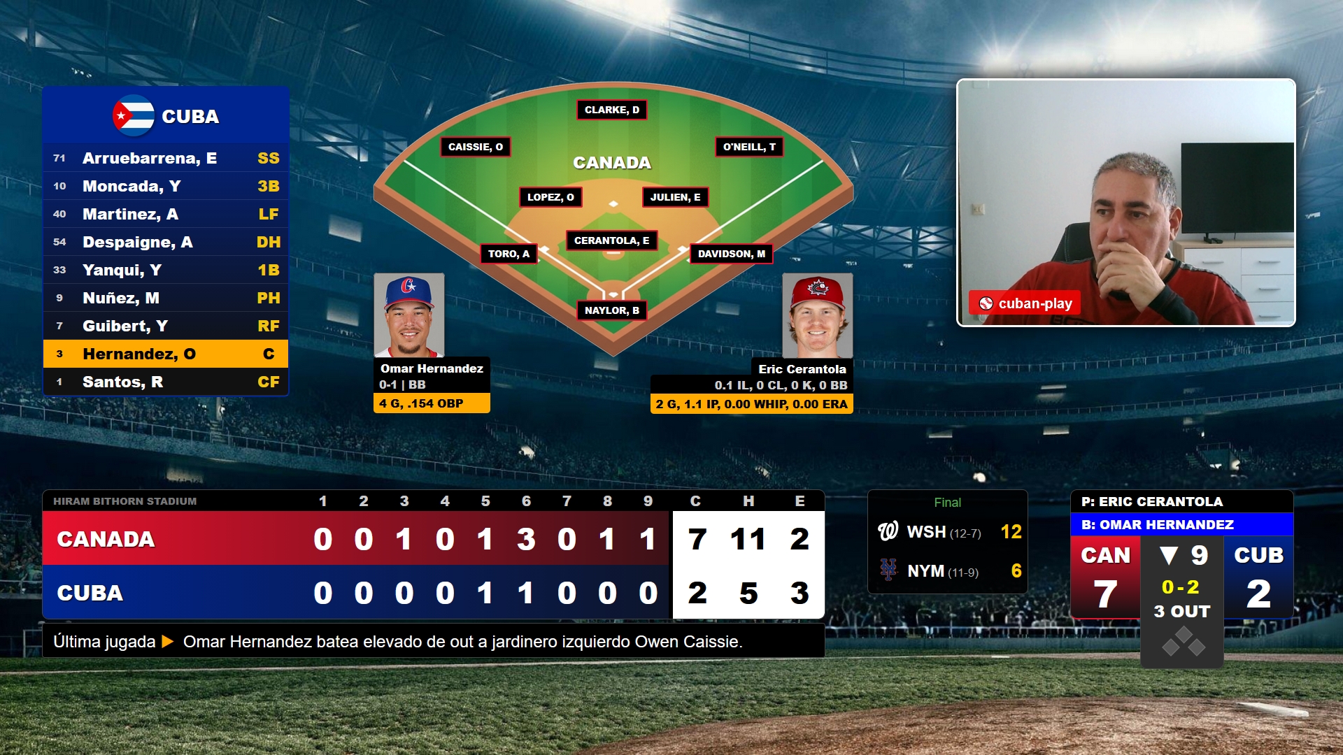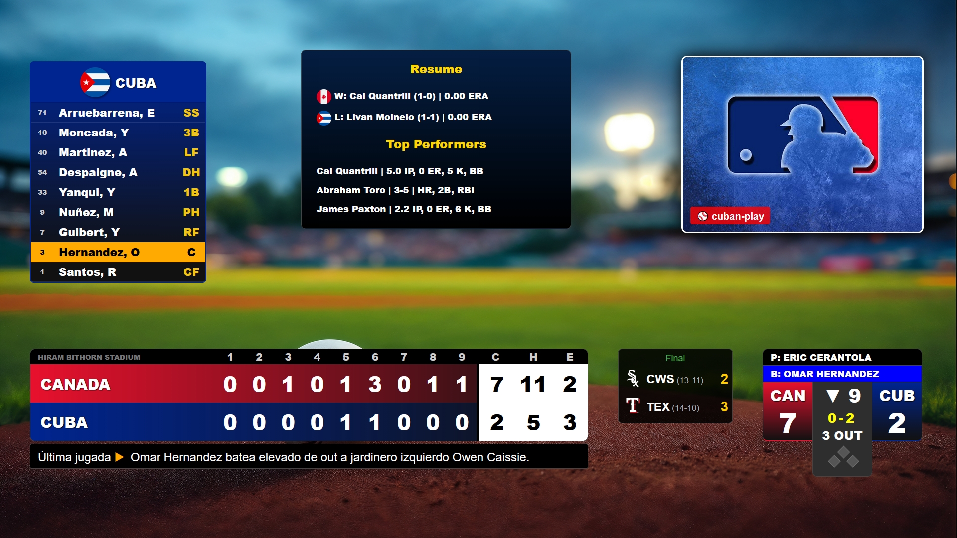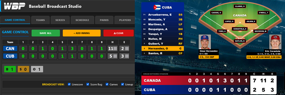Este sistema permite a creadores de contenido narrar y reaccionar a los partidos de béisbol en vivo, mientras muestran en pantalla información visual del juego. Está enfocado principalmente en los partidos de Grandes Ligas, Ligas Invernales, Series del Caribe y Clásico Mundial. Muestra automáticamente estadísticas como el linescore, alineaciones y datos del juego que se actualizan en tiempo real.