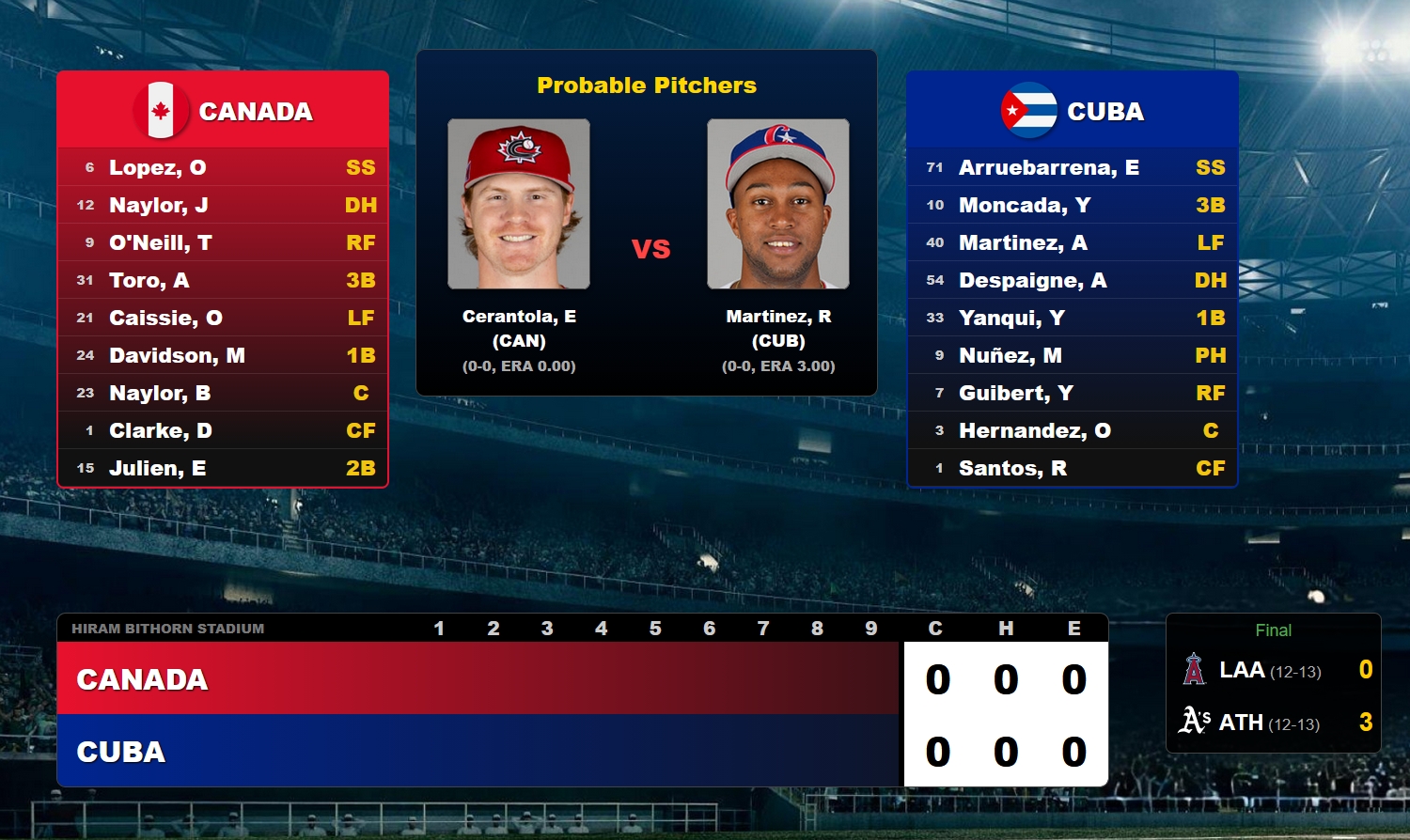 PREVIEW (antes de iniciar, y donde aparecen los pitchers problables y las alineaciones si ya están)